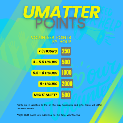 You know we value our volunteer team. So we not only look after you on the events you give up time to support but you earn points while you're there too.